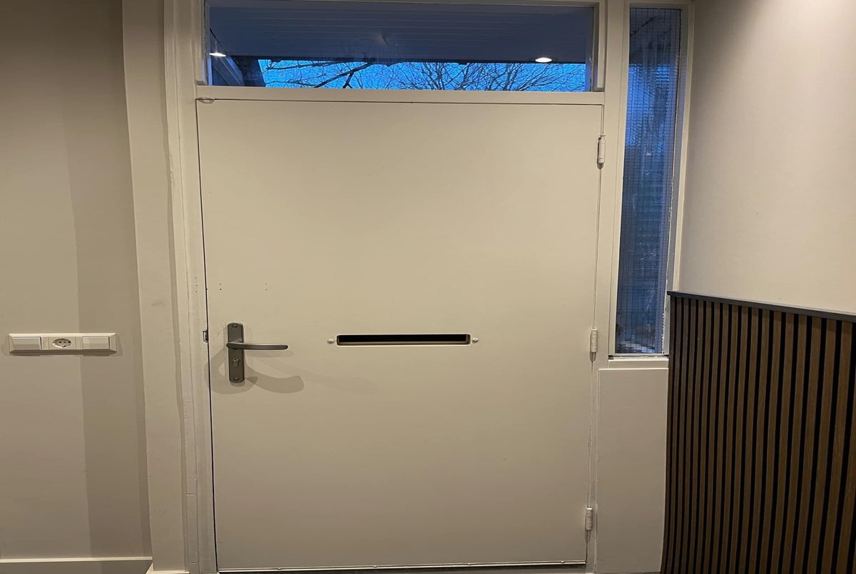 Bij Suvaal Schilderwerken hebben we deze nieuwe deur afgelakt in RAL 9010 met Sigma S2U Allure Gloss. Dit zorgt voor een strakke, duurzame hoogglans afwerking die jarenlang meegaat!